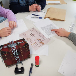 Die Schülerinnen und Schüler der 7. Jahrgangsstufe hatten viel Spaß bei dieser Art von Mathematikaufgaben, mit deren Lösung man Schlösser knacken und so die Schatztruhen öffnen konnte. Darüber, dass auch interessierte Schülerinnen und Schüler der 8. und 9. Klassen freiwillig und mit großer Begeisterung an den Escape-Spielen teilnahmen, freuten sich die "Spieleentwickler" des P-Seminars besonders. Da die Rätseltruhen in der Schule verbleiben, können sie auch in den folgenden Jahren im Mathematikunterricht der Unterstufe eingesetzt werden.