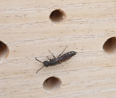 Einige Schülerinnen und Schüler der aktuellen Q11 haben es sich zur Aufgabe gemacht, im Rahmen des Faches "biologisch-chemisches Praktikum" (BCP) die kleinen Tierchen genauer unter die Lupe zu nehmen. Bewaffnet mit Smartphones, Tablets und der Bestimmungs-App "Obsidentify" wurde ein Teil der bunten Tierwelt hautnah fotografiert und anschließend bestimmt. Dabei eröffnete sich ein kleiner Blick in die enorme Vielfalt der Insektenwelt. Denn neben Herrn Kiehrs Honigbienen, die im Rahmen der Schulimkerei einzogen, fühlen sich auch zahlreiche Wildbienen-Arten wohl. Aber auch verschiedene Käfer, Schmetterlinge, Wanzen und Co. ließen sich blicken, teilweise wahre Spezialisten und Exoten. Ein anderer Teil der Schülerinnen und Schüler hat währenddessen mit ein paar kleinen "Umbauarbeiten" Lebensraum für weitere Arten geschaffen. Hinzu kamen ein "Sandarium" für Arten, die im Boden nisten oder auf Beutefang gehen, sowie ein lose gestapelter Haufen aus großen Steinen. Wären die vorhandenen Kalkquader, gerade in der Morgensonne, nicht ideale Orte für Eidechsen, Wärme zu tanken? Alle hatten auf ein grandioses Eidechsen-Foto gehofft. Vielleicht fehlte ihnen bisher noch ein geeigneter Rückzugsort zum Verstecken, weshalb die "Steinburg" errichtet wurde. Doch auch wenn aus dem erhofften Reptilien-Shooting nichts wurde, haben wir zahlreiche andere Tierchen entdecken können.