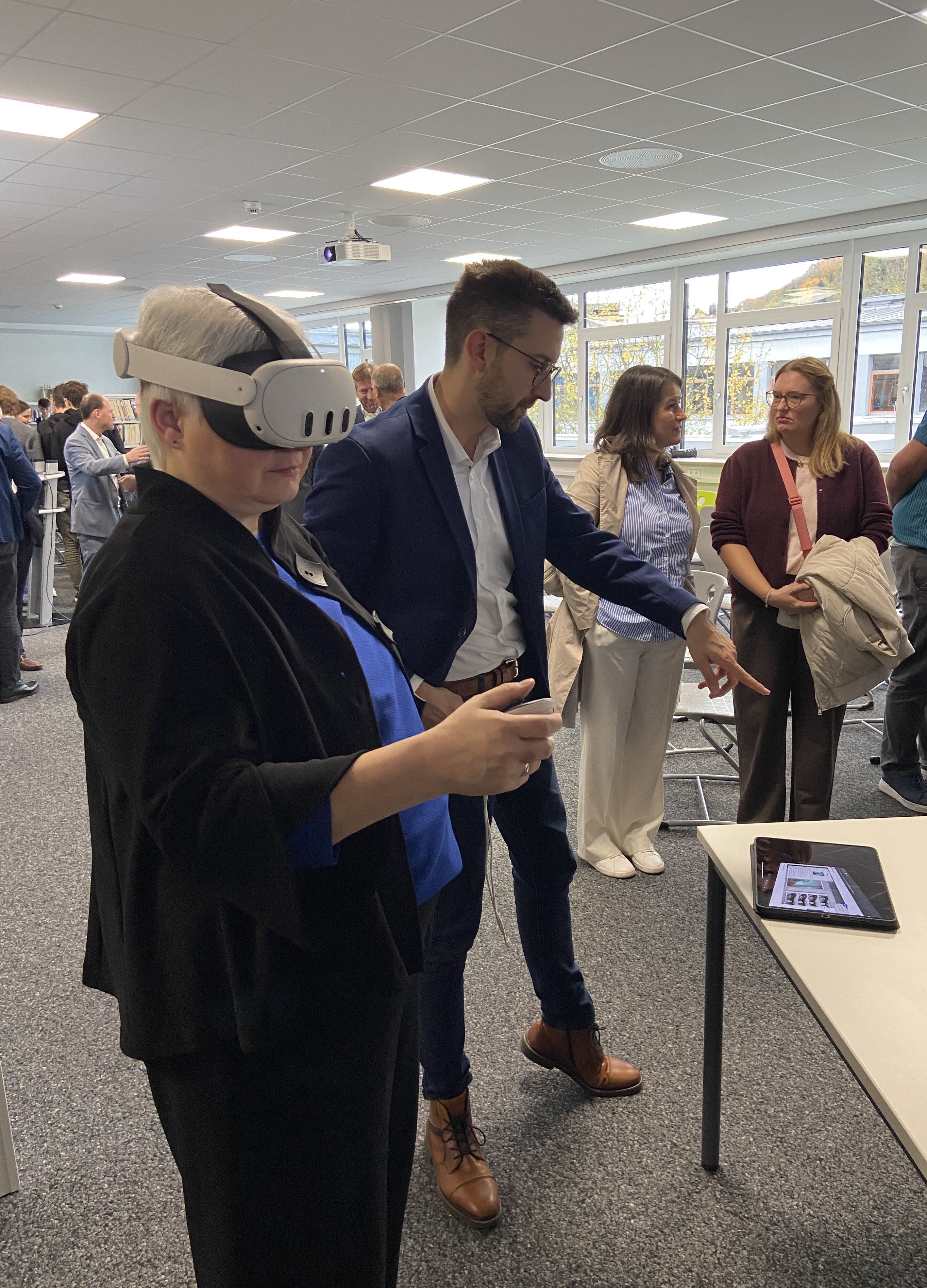 Nach dem offiziellen Programm konnten die Gäste ausgewählte Projekte selbst ausprobieren: VR-Brillen, 3D-Scans von Kirschen und Robotik-Module luden zum Staunen und Mitmachen ein. Lehrkräfte, Schülerinnen und Schüler sowie Gäste nutzten die Gelegenheit zum Austausch und gemeinsamen Entdecken.