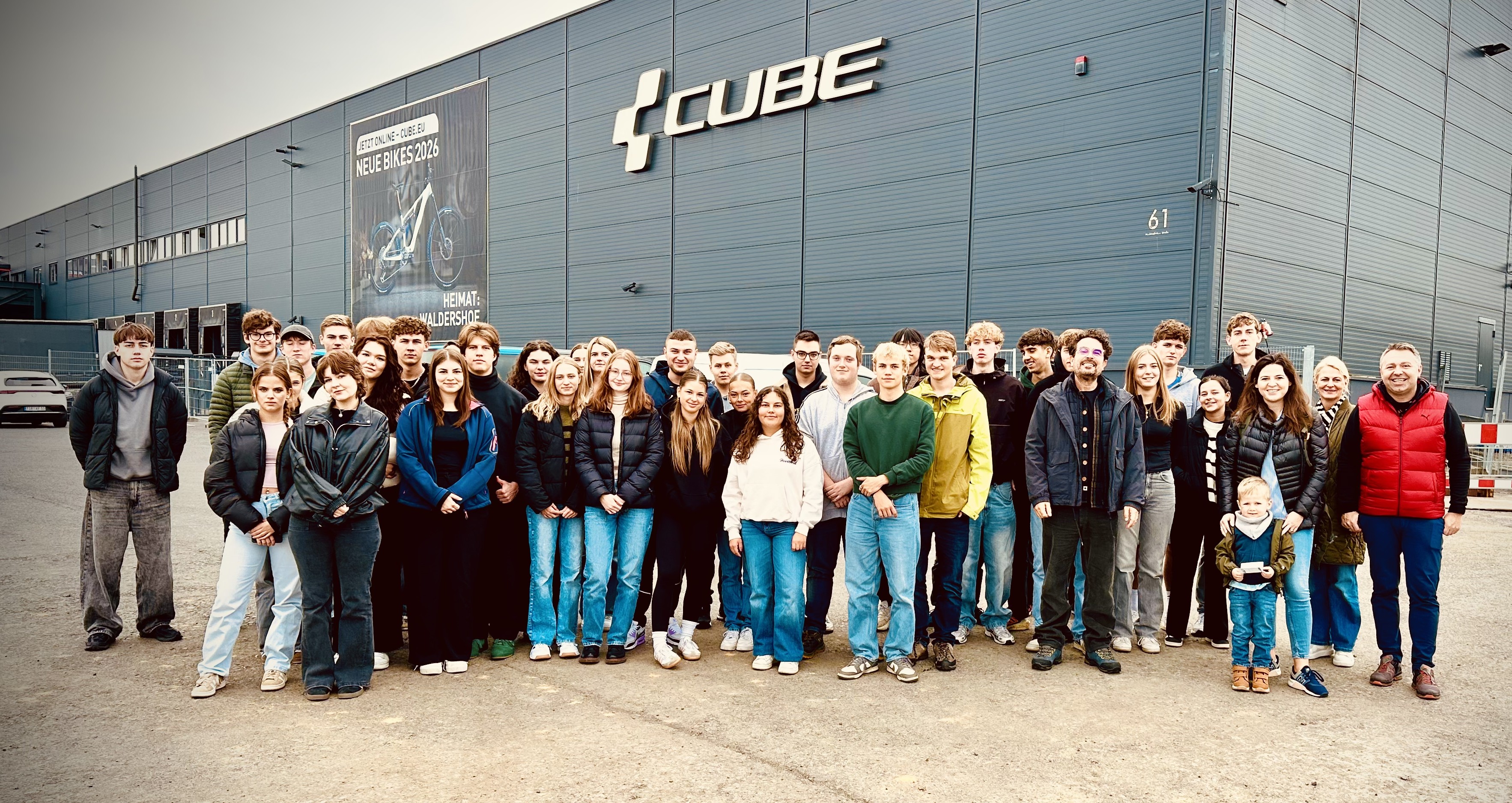 Ein echtes Highlight erwartete die Gruppe am zweiten Tag: Hier drehte sich alles um Geschwindigkeit, Innovation und globale Märkte – eine Werksführung beim Premium-Fahrradhersteller „Cube“ in Waldershof bei Marktredwitz stand auf dem Programm. Die Schülergruppe erhielt exklusive Einblicke in Produktion, Logistik und Marketing eines global agierenden Unternehmens, das dennoch regional fest verwurzelt ist und damit als Paradebeispiel für erfolgreiche Industrie im ländlichen Raum dienen kann.